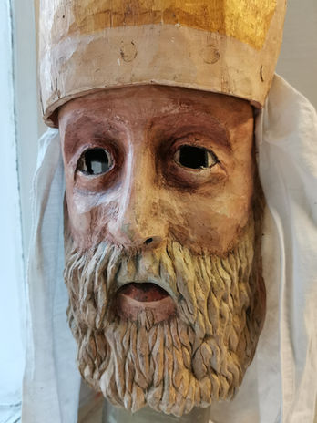 Carved masks of St. Nicholas, Devil and Angel for the event of Waldtein loggia.